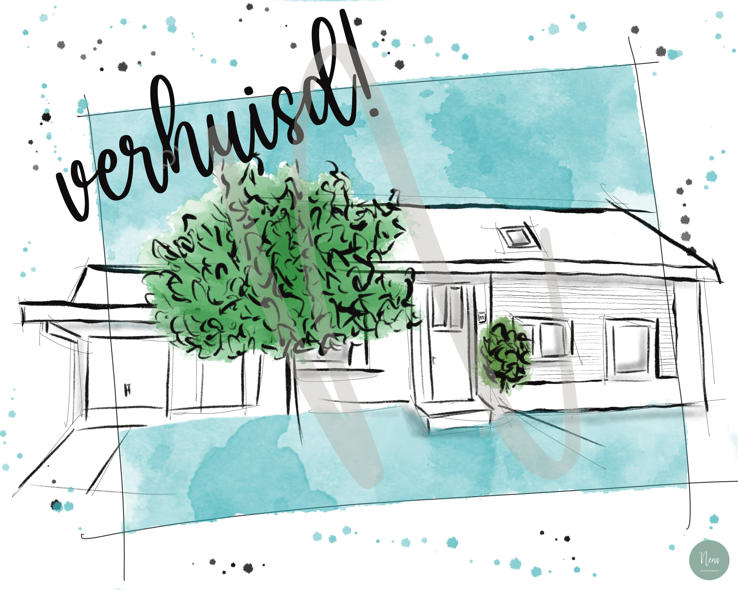 Schets van een huis ten behoeve van een verhuisbericht